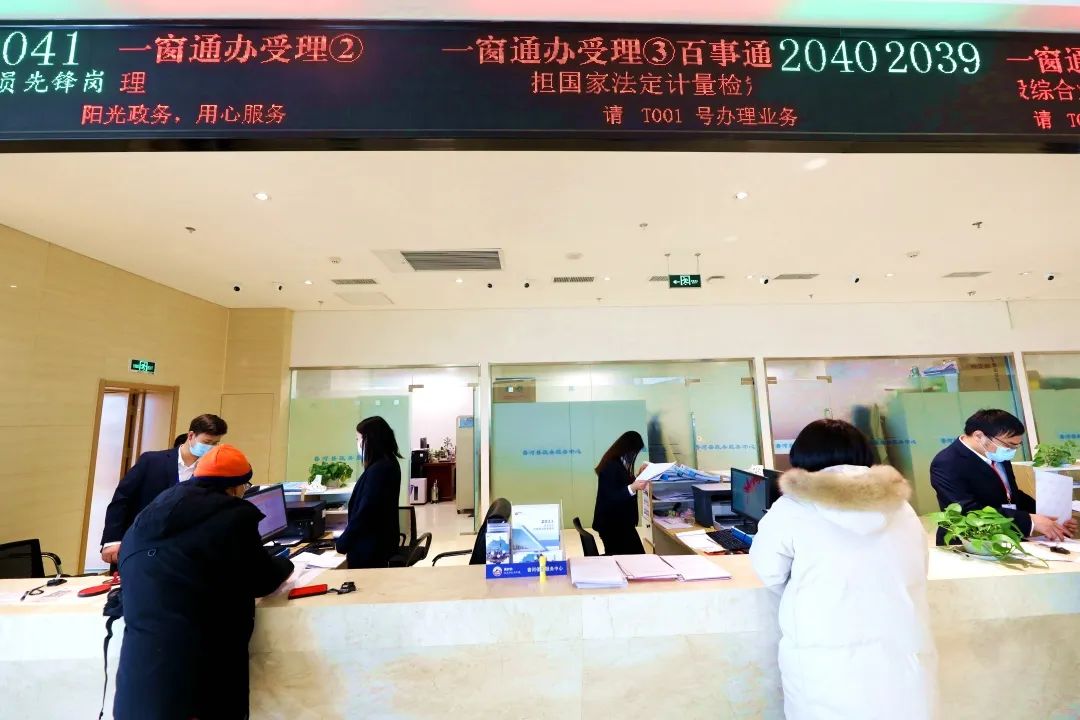 香河便民服务中心二层“一窗综合受理”窗口。