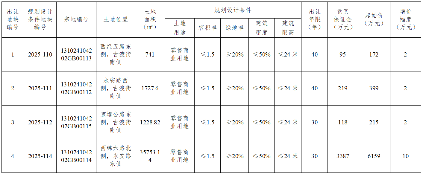 香河县自然资源和规划局国有建设用地使用权拍卖出让公告