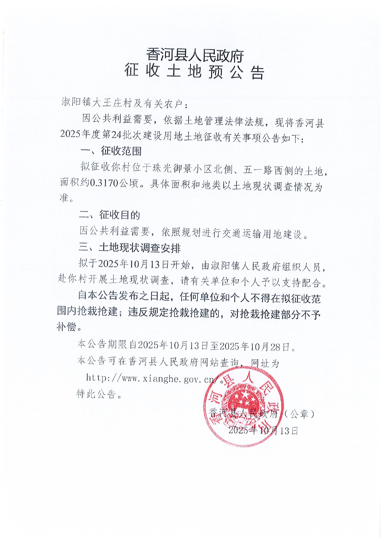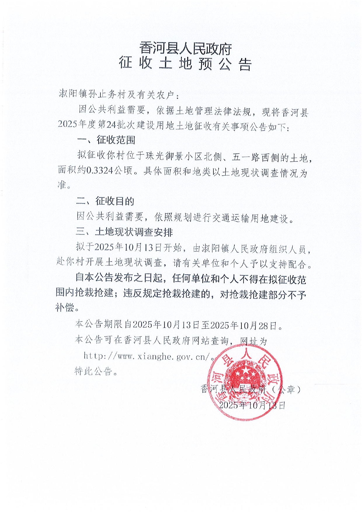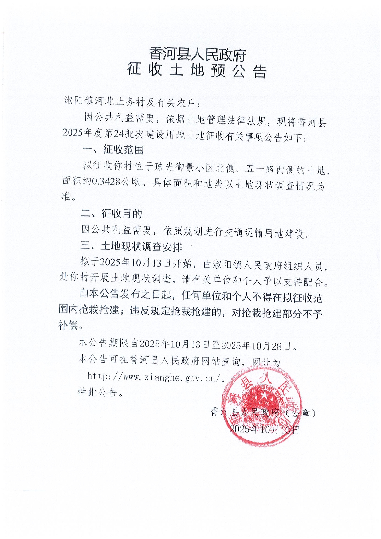 香河县2025年度第24批次建设用地预公告