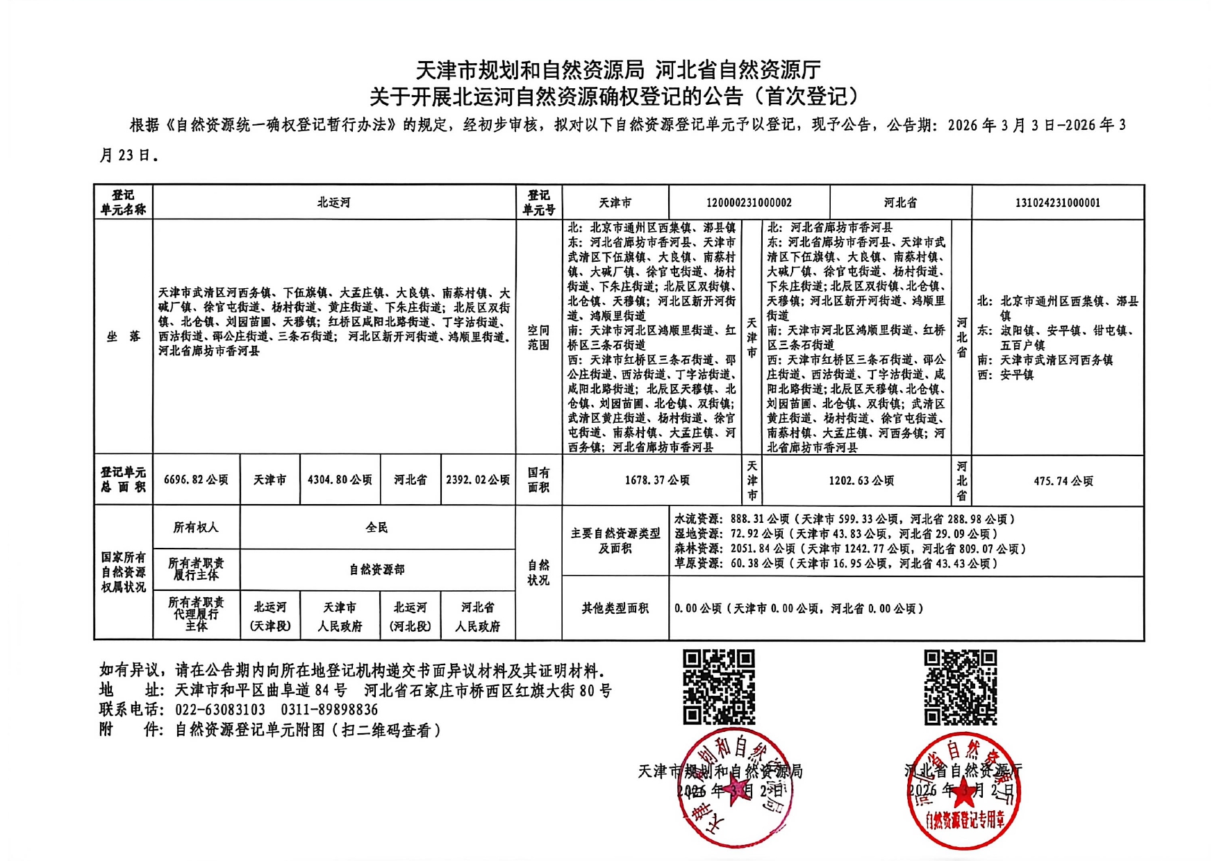 关于开展北运河自然资源确权登记的公告(首次登记)